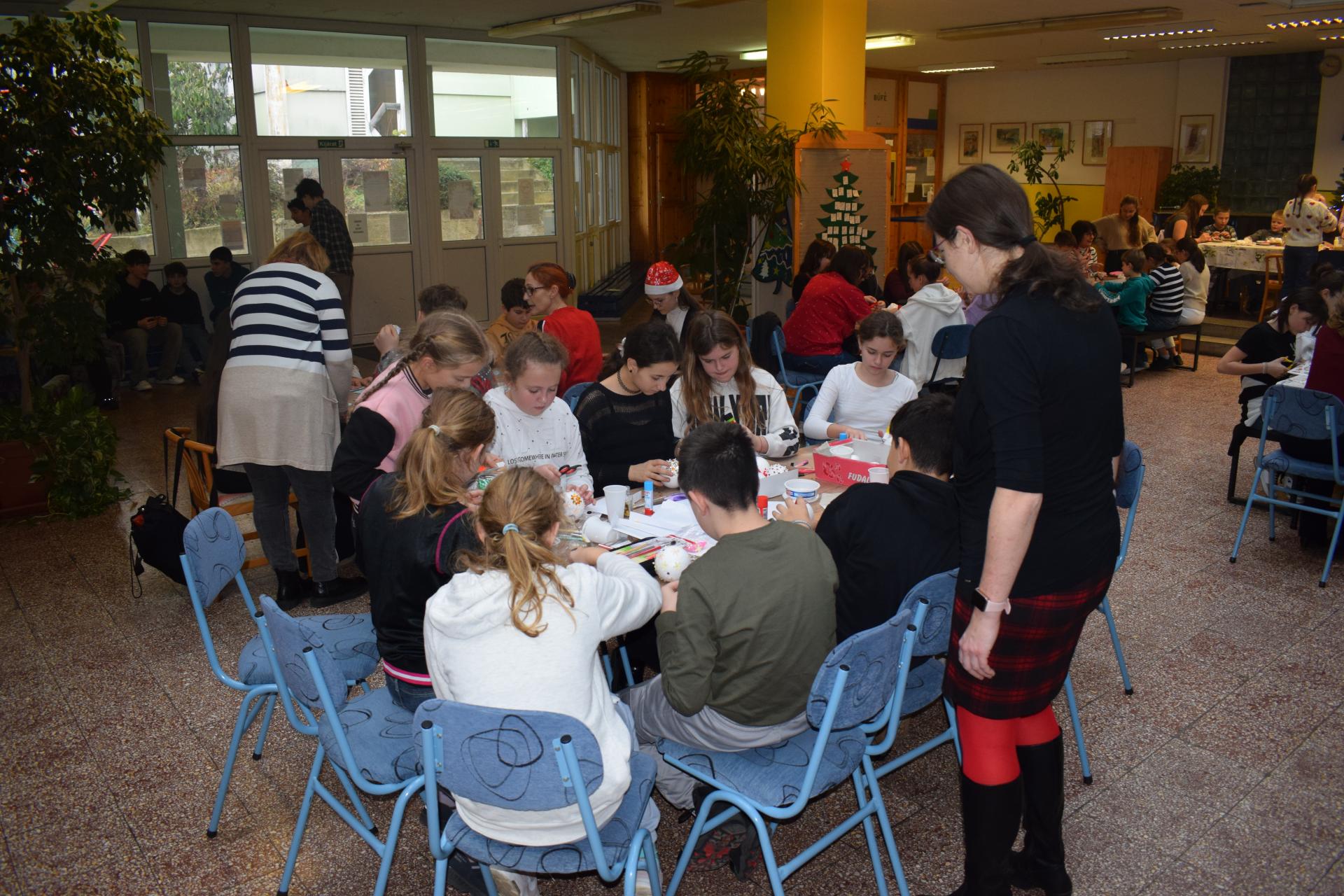 December 19-én, az év utolsó tanítási napján vidám és alkotó hangulat töltötte meg iskolánk auláját. A tanítás lezárásaként kreatív játszóház várta a felső tagozatos diákokat, ahol összesen 10 asztalnál volt lehetőség a közös alkotásra.