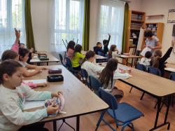 Iskolánk könyvtárában Ildikó néni a 3.b-nek és a 3. a osztálynak is népmesenapi könyvtárhasználati foglalkozást tartott.Volt mesehallgatás, játékos feladatlap " kézbe vehető" könyvbemutatóval, aminek segítségével ügyesen oldották meg a feladatokat a gyerekek!