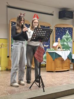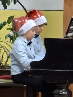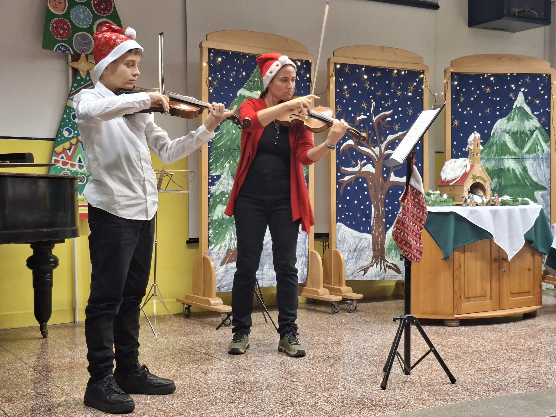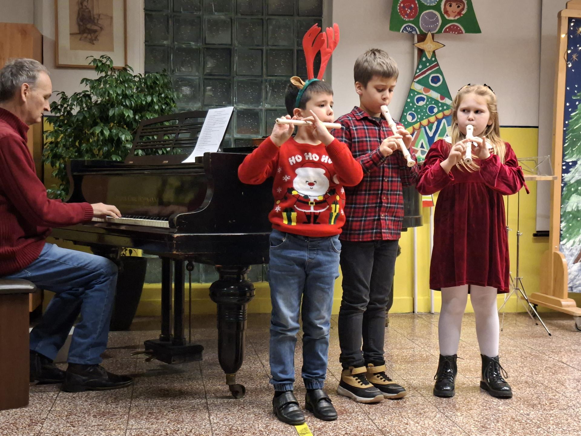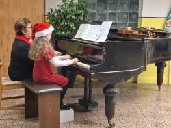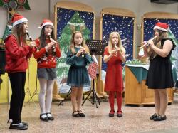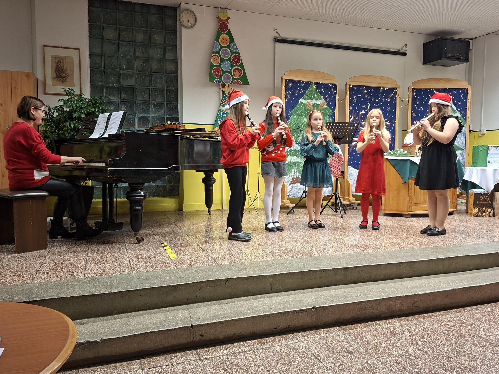 Vidám mikulás- és karácsonyi dallamok töltötték be az iskola auláját december 4-én délután. A hegedűk, furulyák, fuvolák és a zongora hangjára idő előtt meg is érkezett "pikulájával" a "nótás" mikulás, aki apró ajándékkal kedveskedett a gyermekeknek.