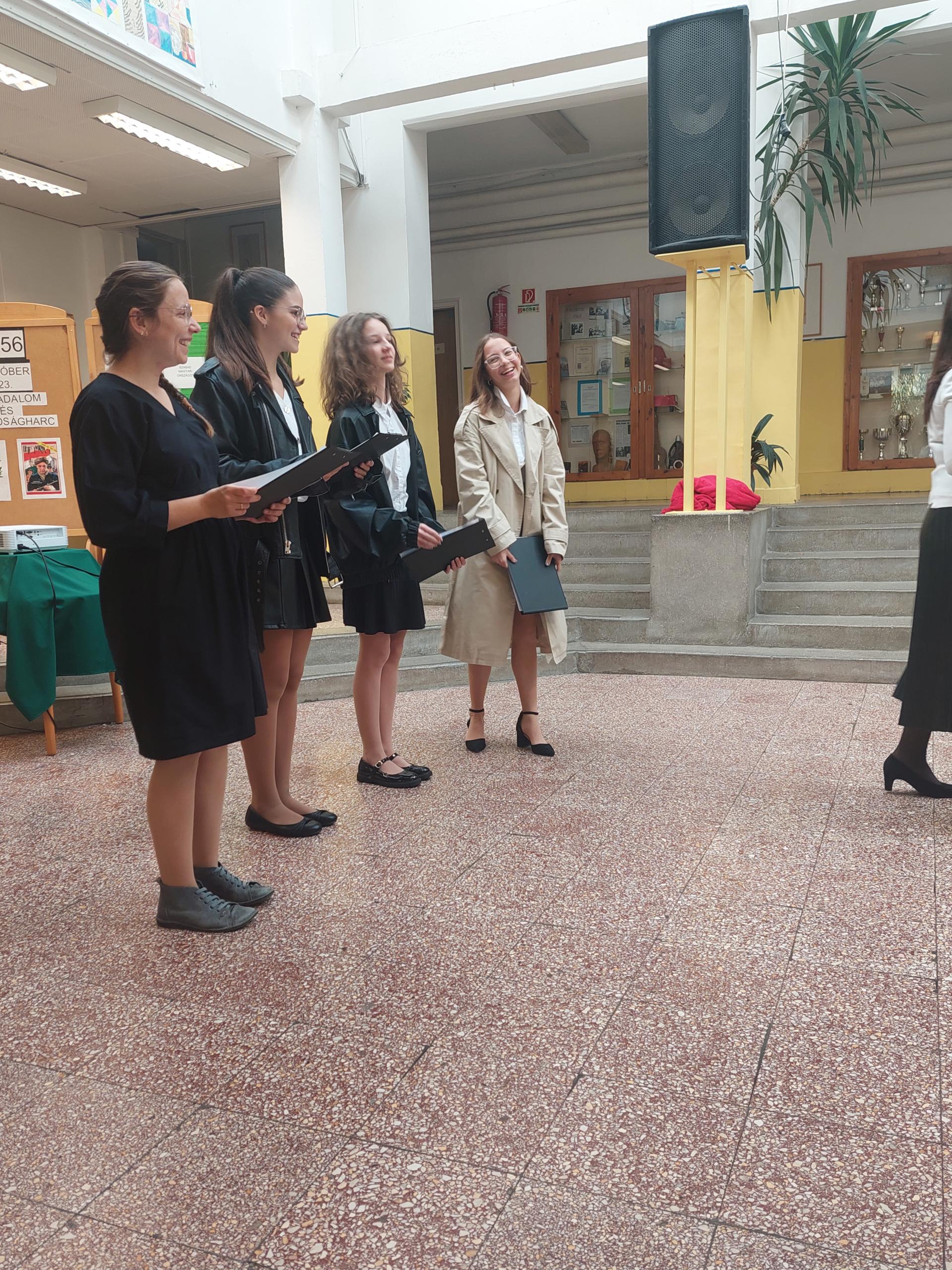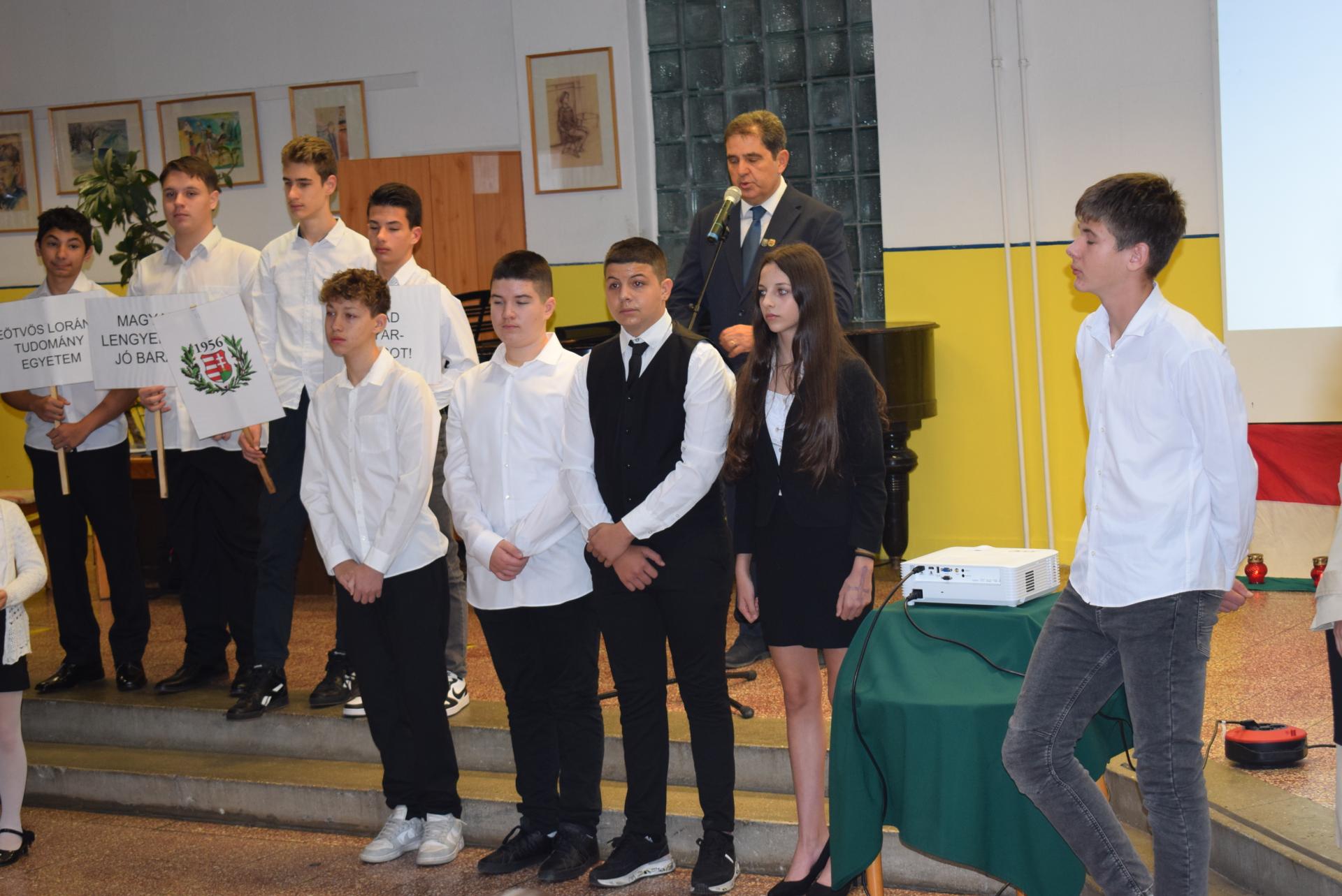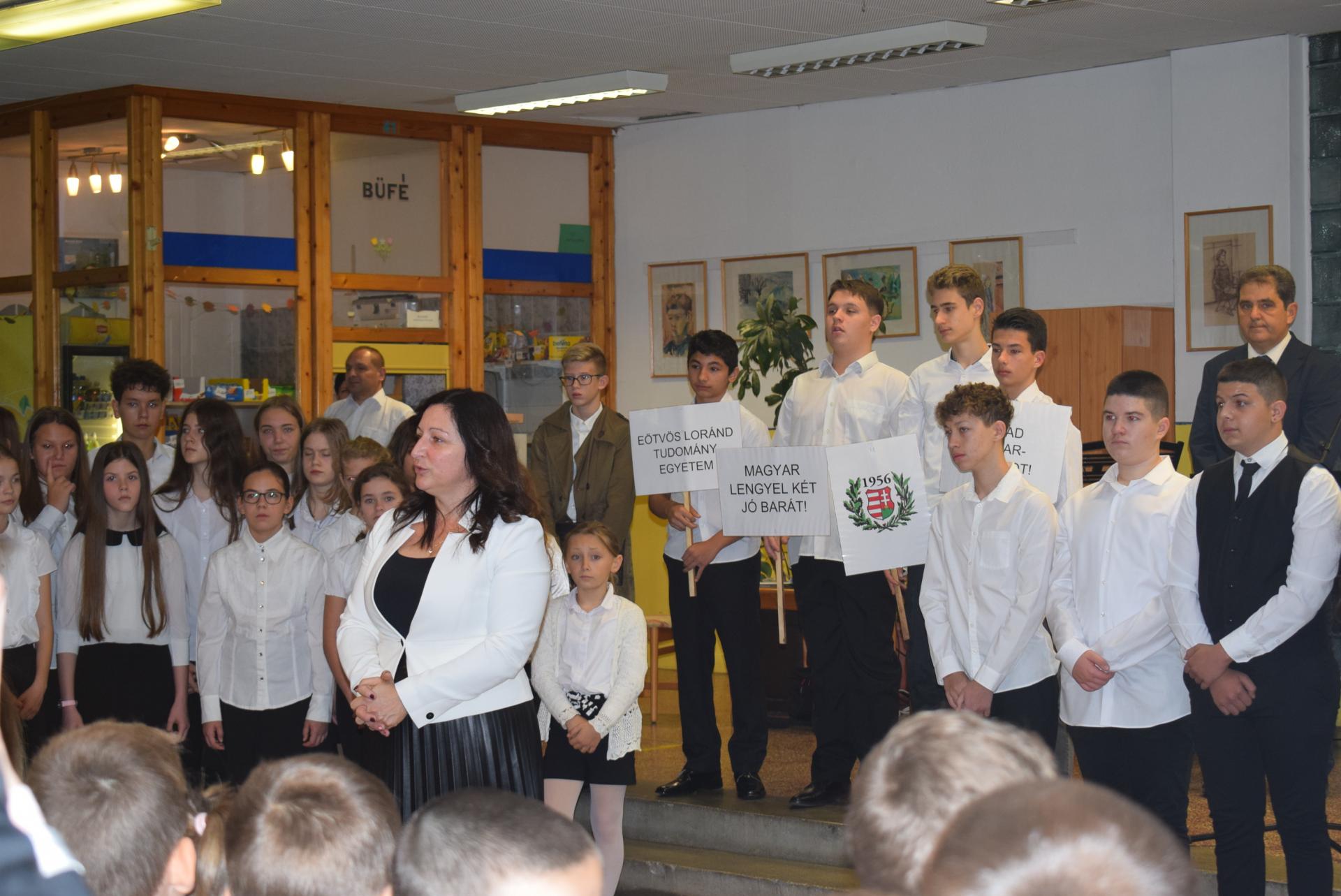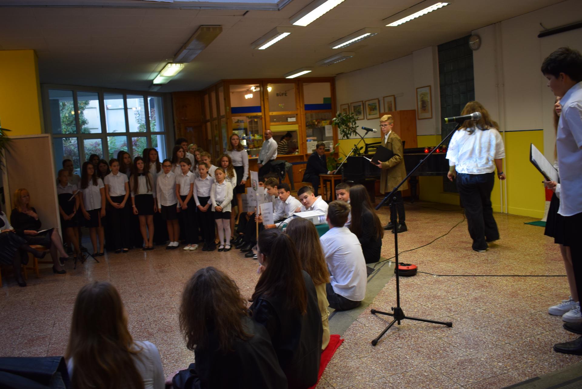 Galériák Október 23-i megemlékezés iskolánkban 2025. október 22., szerda @ 14:19 Hagyományainknak megfelelően idén is a nyolcadik évfolyamosok készültek ünnepi műsorral nemzeti ünnepünk tiszteletére. A délelőtt során ellátogattak hozzánk az óvodások is, akik egy kis részletet láthattak az ünnepi műsorból. Kapcsolódó galéria Október 23-i megemlékezés iskolánkban Megosztás