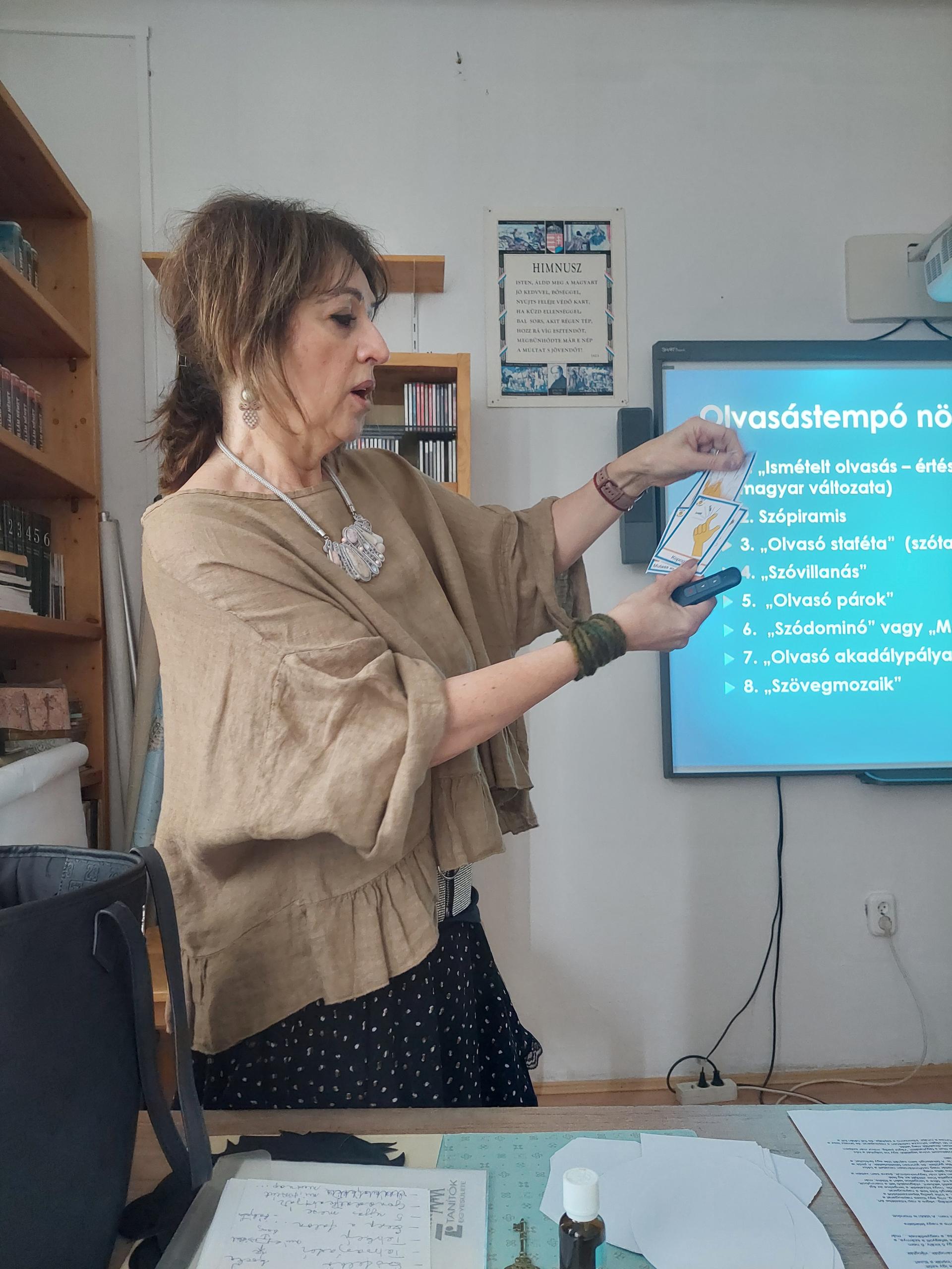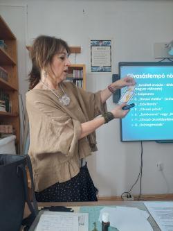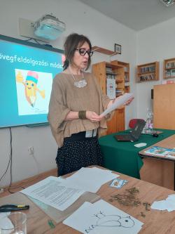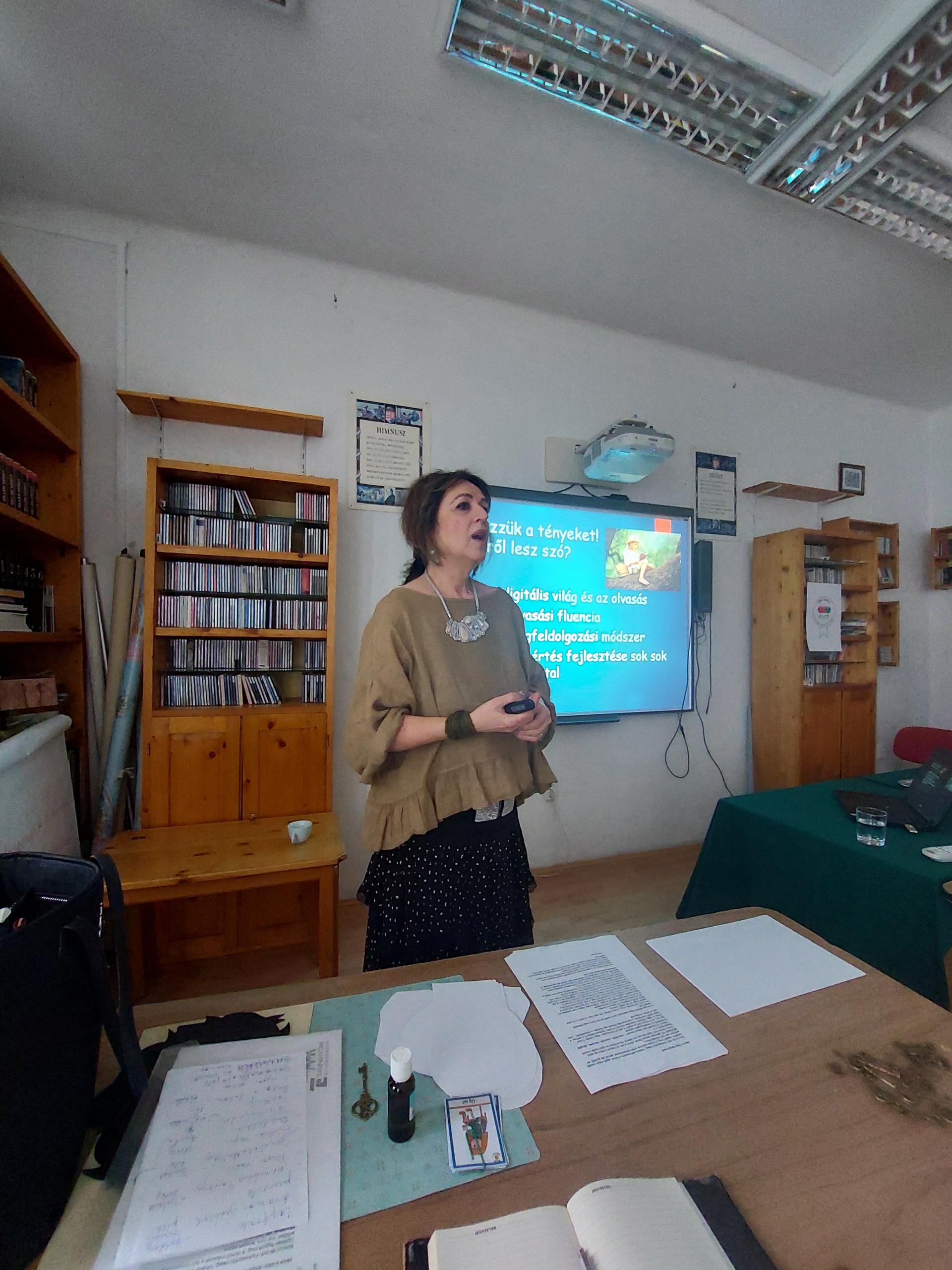 Április 14-én délután az alsós tanítók a felsős magyartanárok az Olvasási stratégiák és a szövegértés fejlesztése című előadást hallgathatták meg, amelyet Csájiné Knézics Anikó a Móra Kiadó olvasóvá nevelés nagykövete tartott. A prezentáció számos jól használható módszert mutatott be. Gyakorlatorientált szemléletben közelítette meg a témát, így az elhangzott ötletek könnyen beépíthetők a mindennapi tanításba.