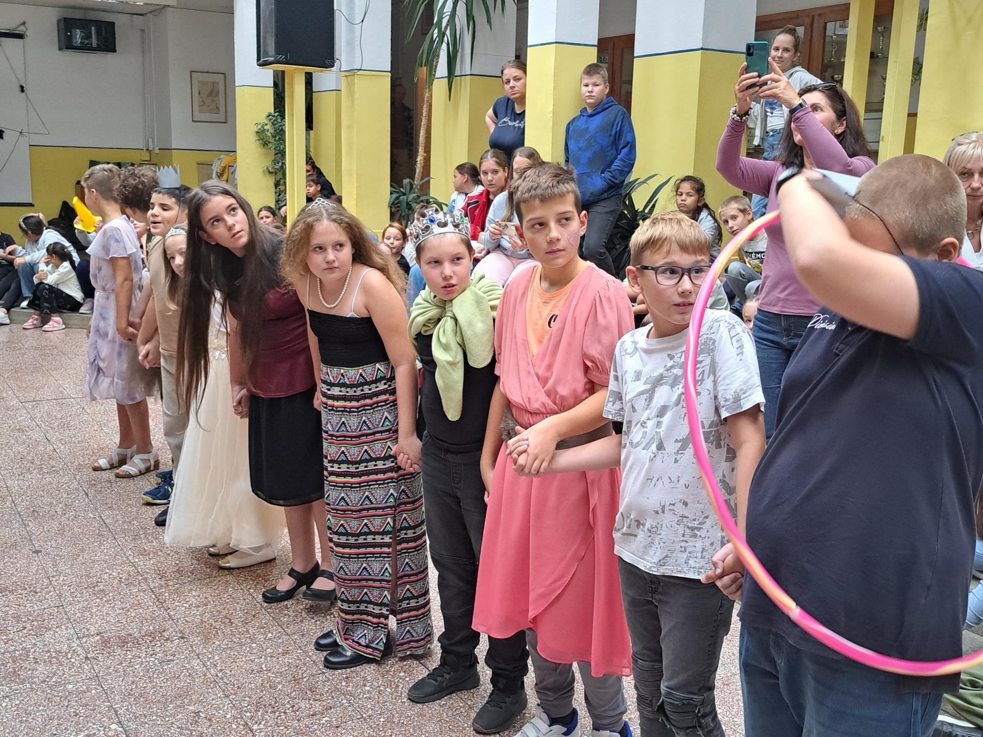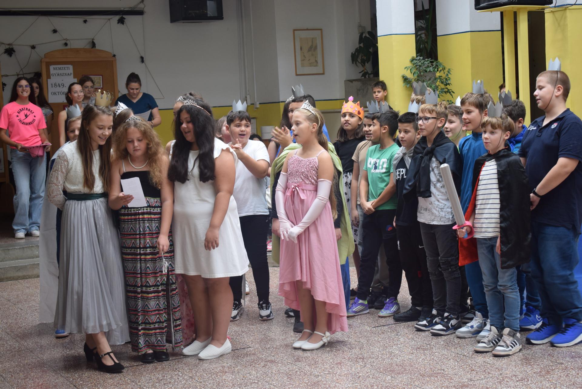 Az ötödikesek hercegi és hercegnői öltözetben vonultak be, majd előadták saját, előzetesen megírt csapatindulójukat, amellyel bemutatták kreativitásukat és összetartásukat. Ezt követően játékos feladatok és sorversenyek következtek, amelyek során a gyerekek vidám hangulatban mérhették össze ügyességüket.