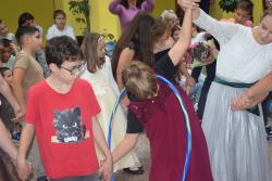 A délután ünnepélyes pillanata az eskütétel volt, amelyben az ötödikesek ígéretet tettek arra, hogy méltó tagjai lesznek az iskola felső tagozatának. A program végén a résztvevők közösen táncolták el a kacsatáncot, ami garantálta a jókedvet és a közös élményt.