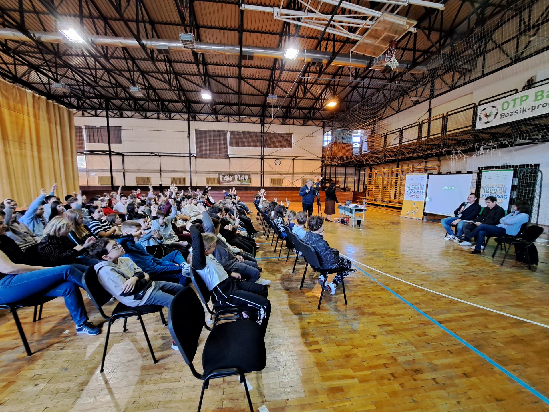 A beszélgetés végén a diákok is feltehették kérdéseiket, autogramot kérhettek, sőt, közös fotókat is készíthettek vele.