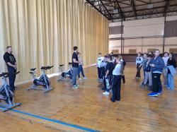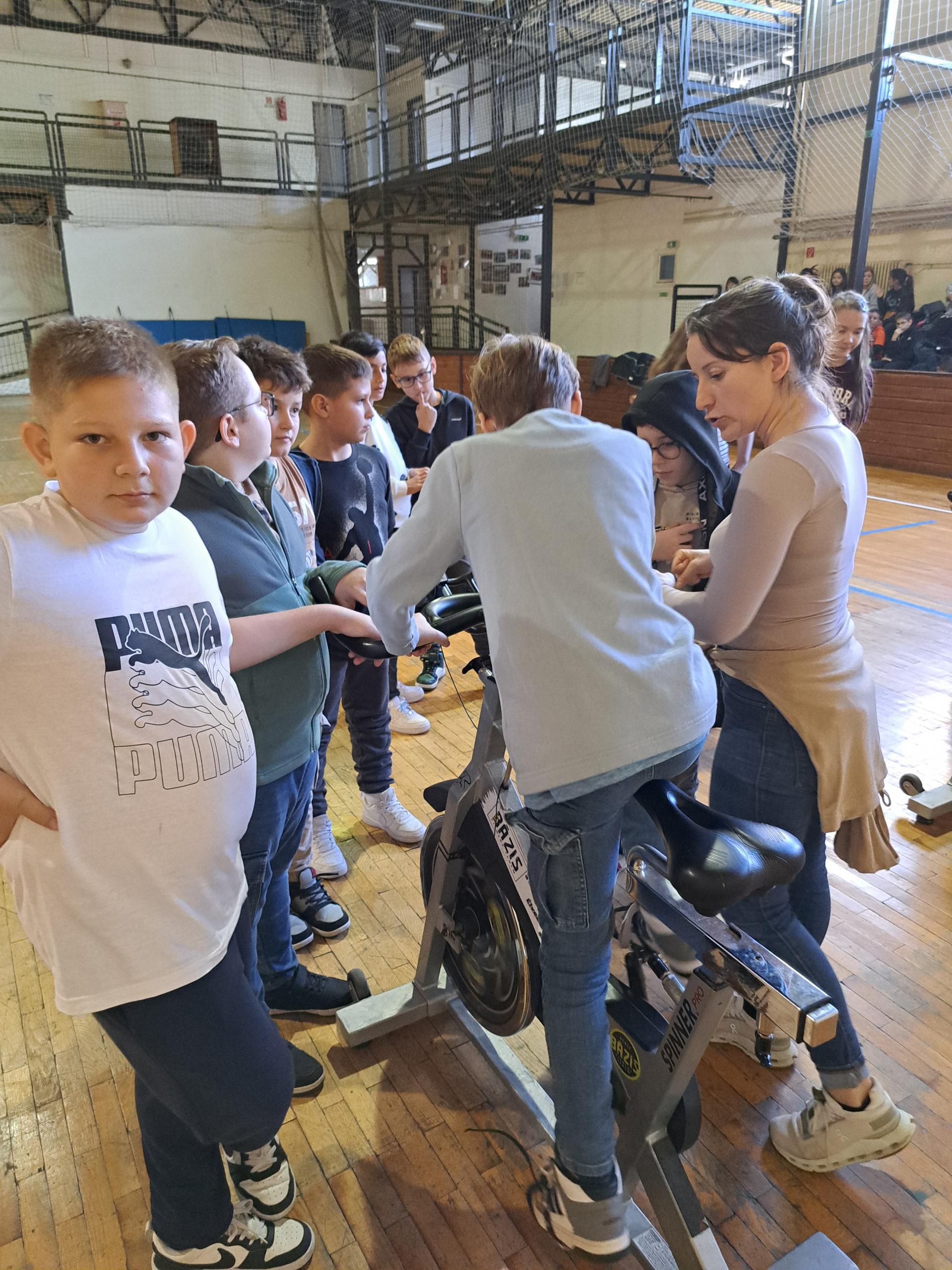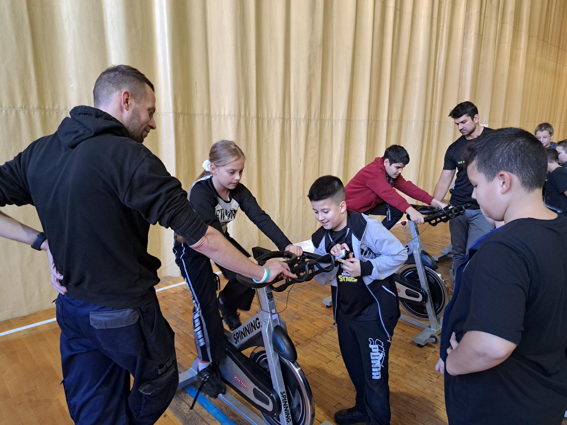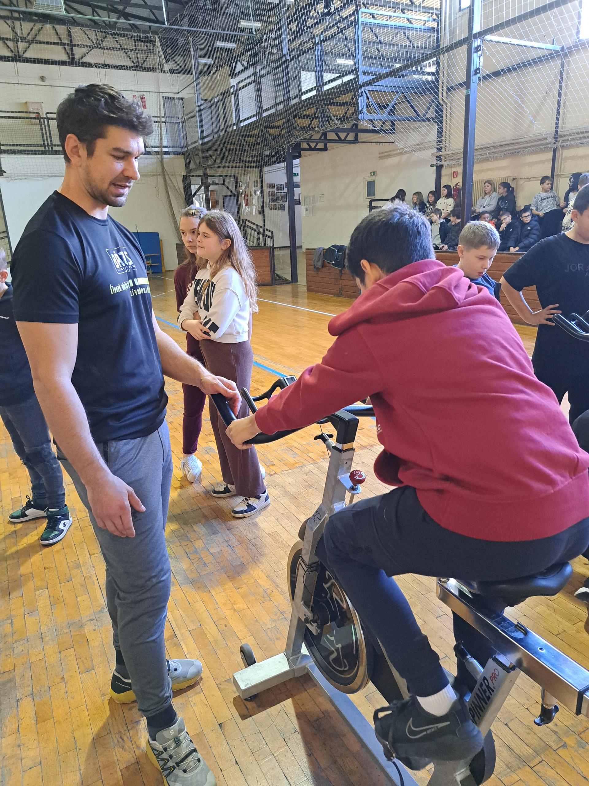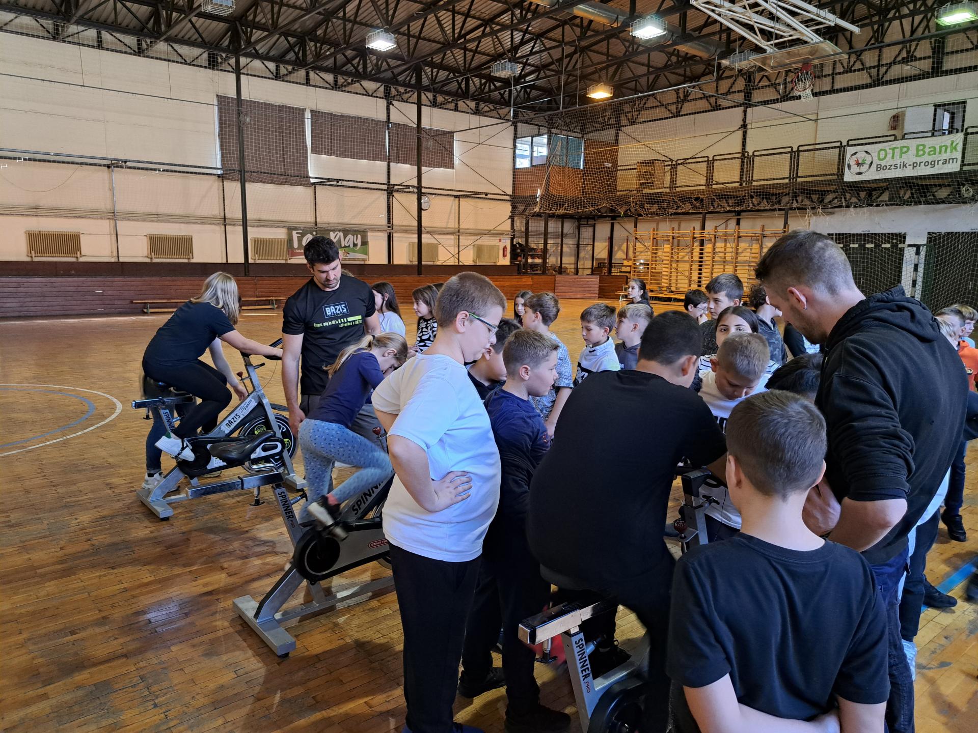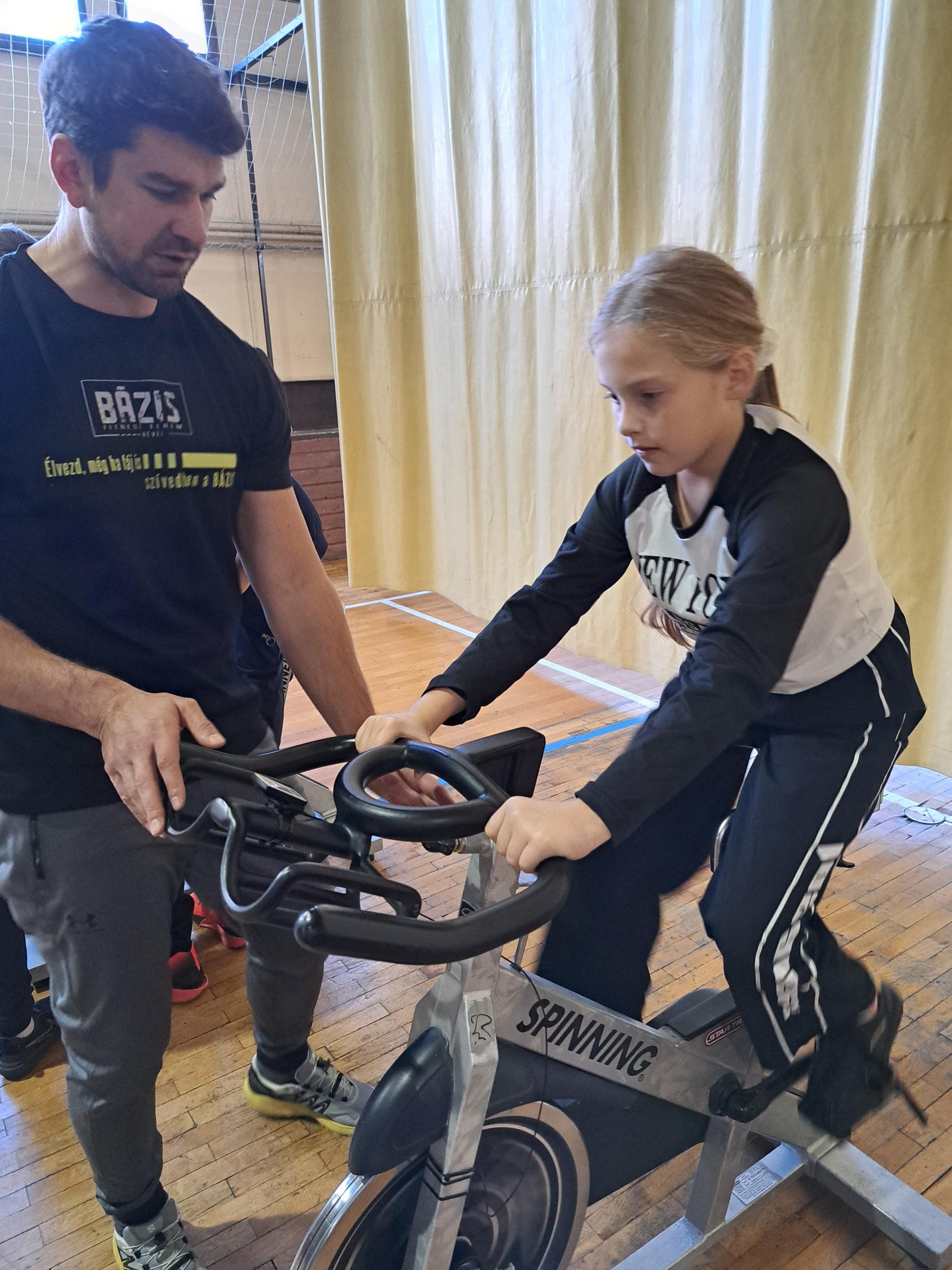 A nap a sport jegyében telt tovább, hiszen a helyi Bázisról érkezett iskolánk volt diákja, Torsa Dániel, aki csapatával együtt bemutatta a spinning kerékpárok működését. A gyerekek megtudhatták, hogyan zajlik egy ilyen edzés, milyen hatással van a szervezetre, és miért remek mozgásforma a spinning.