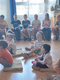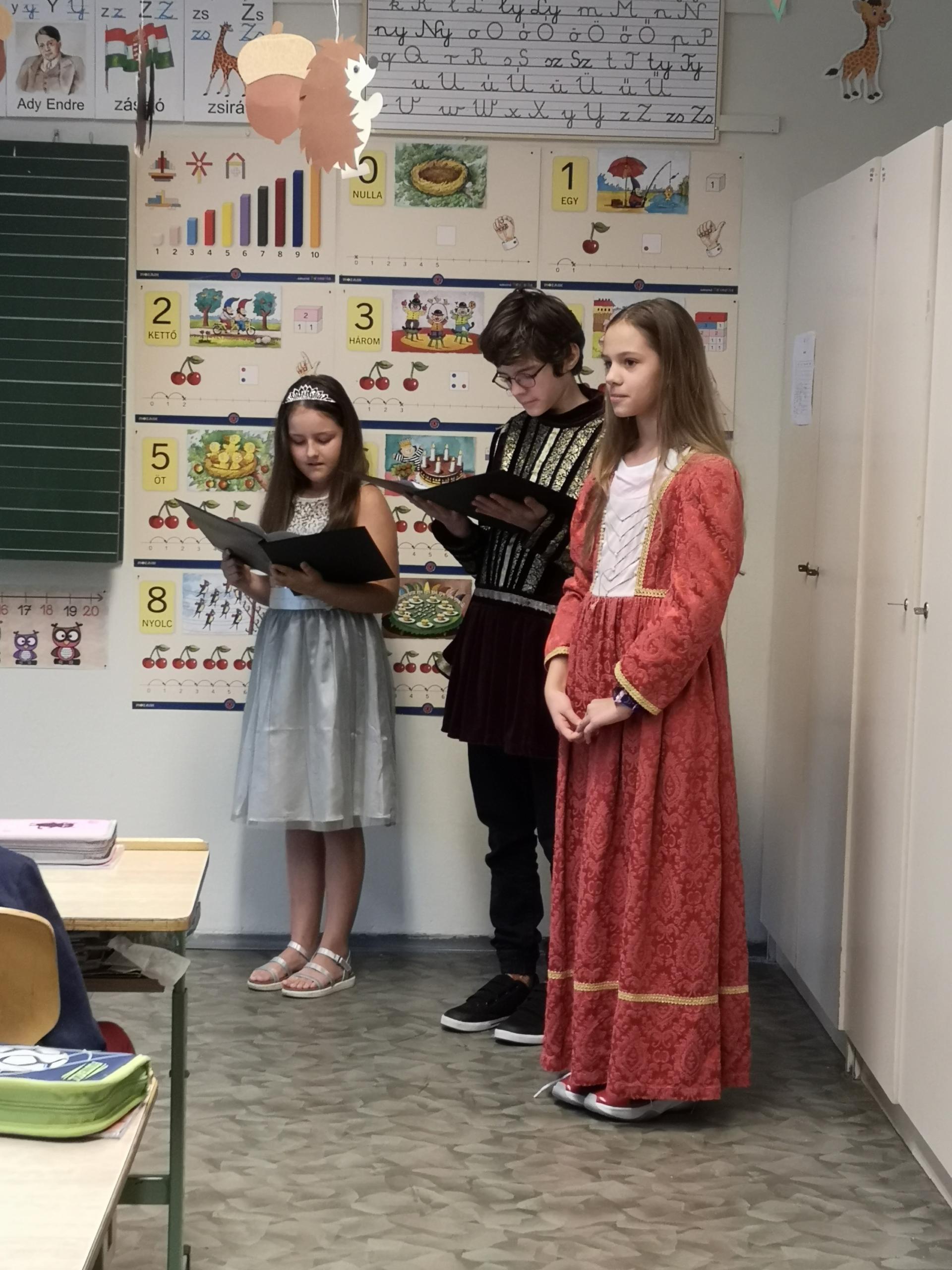 Délelőtt az alsós osztályokba a felsős testvérosztályokból érkeztek előadók, akik egy-egy mesét olvastak fel a kicsiknek.