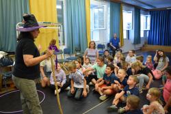 A délután 3 próba teljesítésével folytatódott alsó tagozatos tanulóink számára. A feladatokba a negyedik évfolyamosok kíséretében bekapcsolódtak a nagycsoportos óvodások, akik az OVI-SULI program keretén belül látogattak el iskolánkba. Mivel sikeresen teljesítették a próbákat, az osztályok elnyerték a menetlevélre kerülő matricákat.