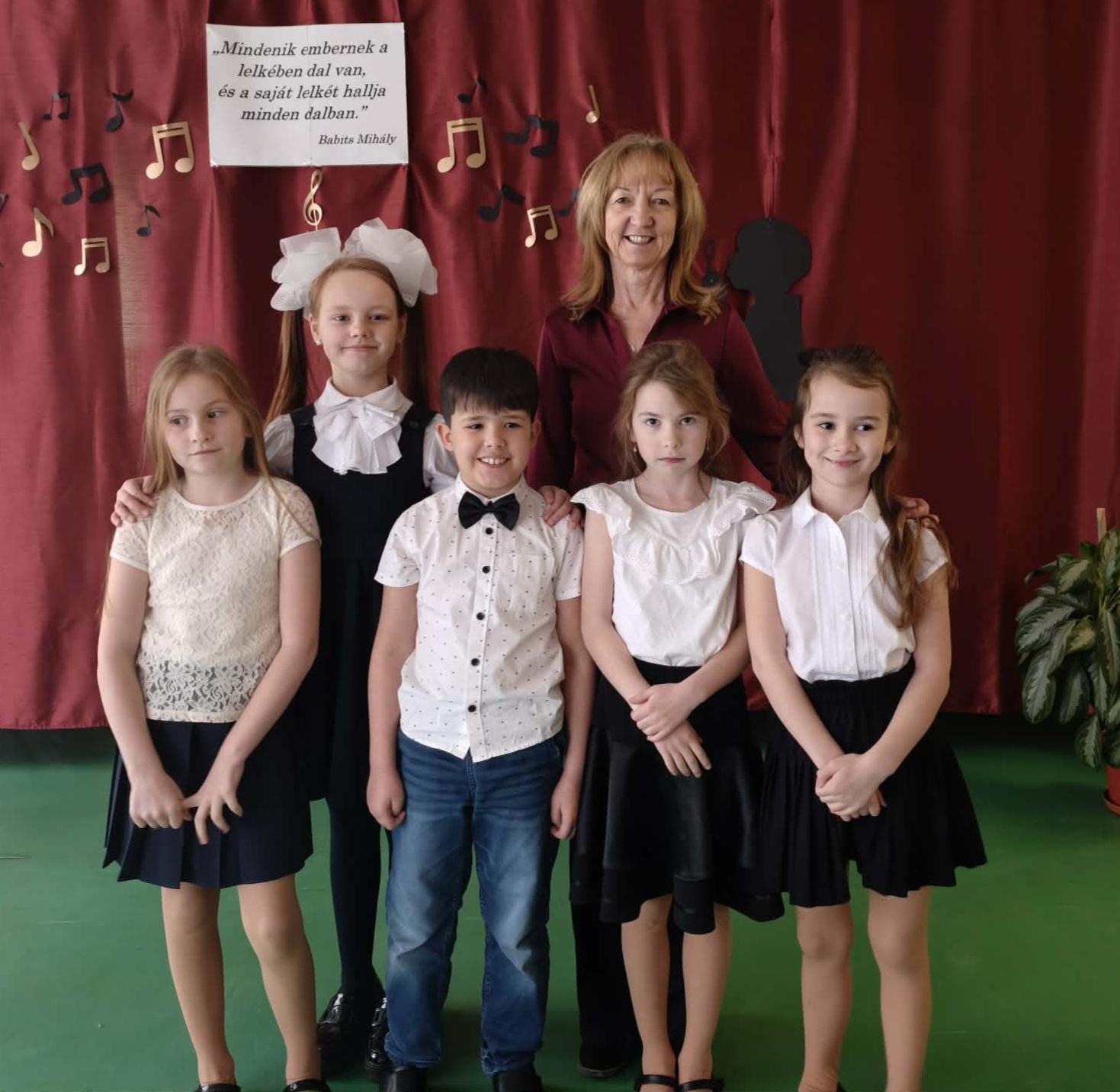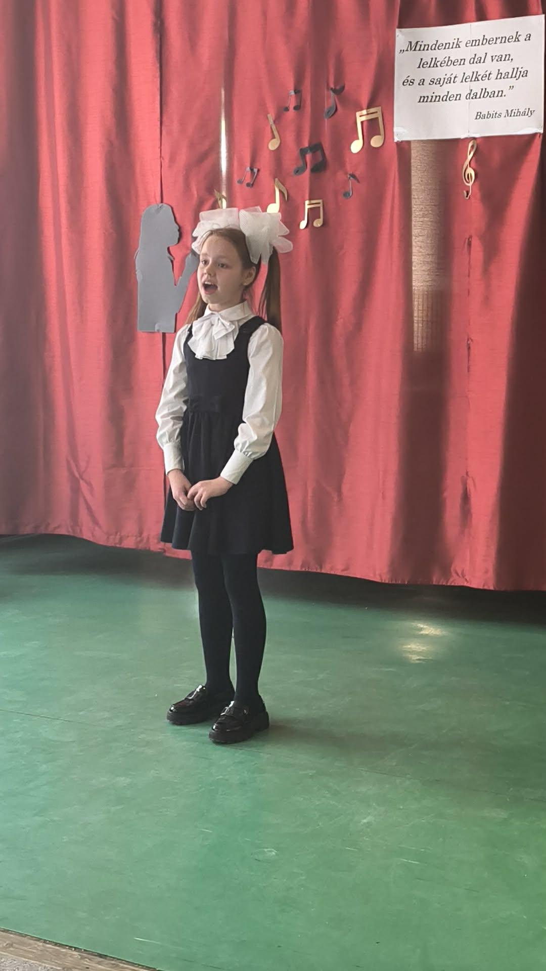 Szanyi Bercel (2.b) Zelk Zoltán versmegzenésítést adott elő gitár kísérettel, Czár Lovászi Zorina (2.a) , Panka Réka (2.a), Soós Rebeka (4.b) a Pancsoló kislanyt énekelték. Szabó Daniella (4.b) egy nagyon szép orosz dallal zárta az alsós fellépők sorát. Mindannyian elnyerték a zsűri elismerését, akik arany minősítéssel jutalmazták a hévízi versenyzök produkcióit.