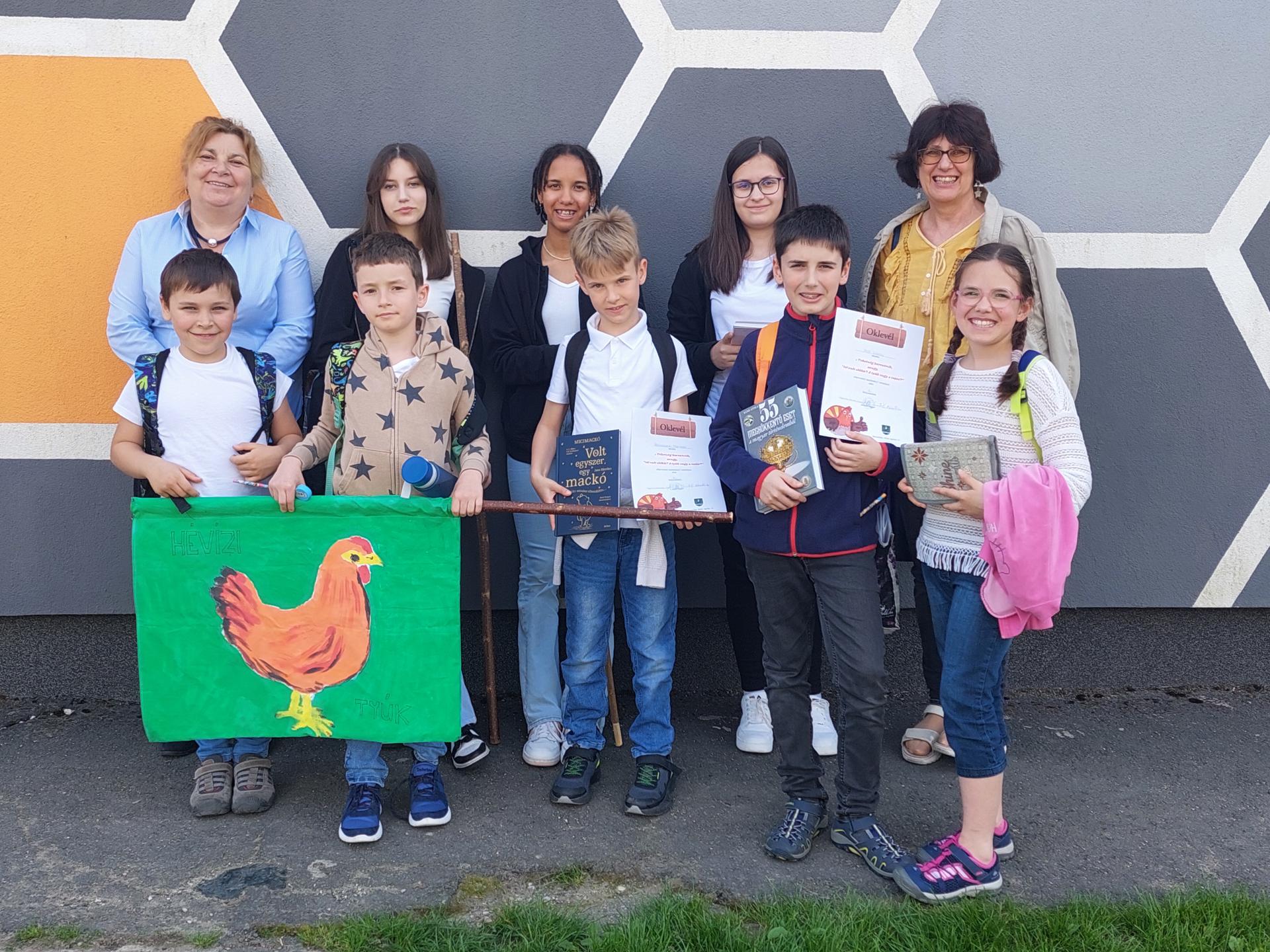 A jelentkező csapatok elkészítették saját csapatzászlójukat, melynek témája a tyúk volt. Egy tyúkot dicsőítő önállóan megírt verset írtunk. Előzetes feladatként a tyúk életét megkönnyítő egyedi terméket készítettünk, melyet a helyszínen 2-3 percben be kellett mutatni.