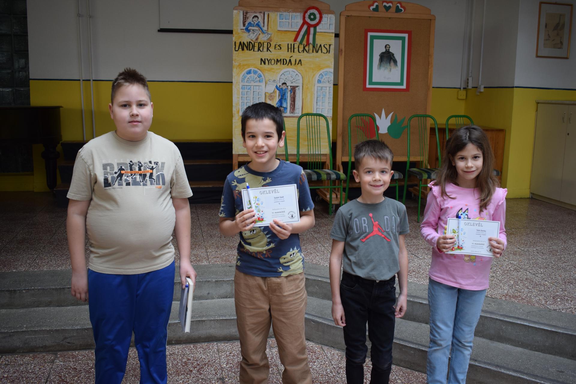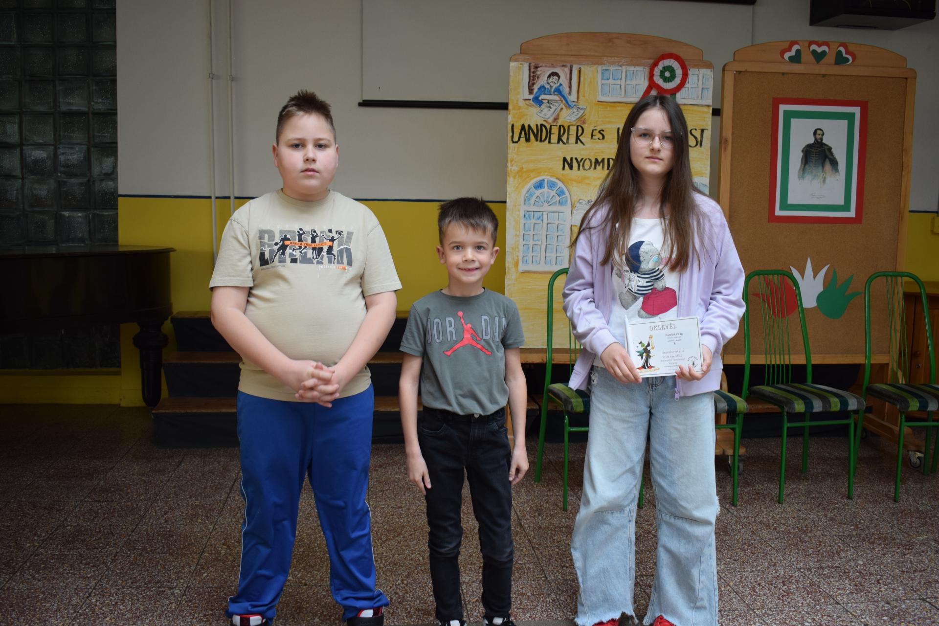 Halász Róbert 3.a Németh Dóra Ágnes 3.a Fegyverneky Csinszka 3.b Moll Stefánia 6.a Kormány Mira 6.a Kovács Kata Dorina 7.a Panka Rebeka 7.b